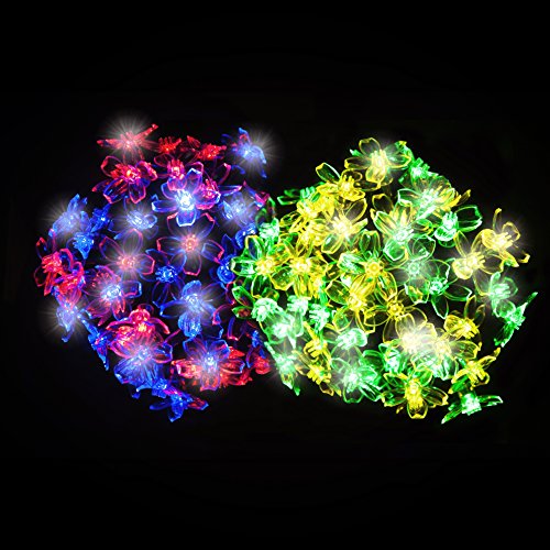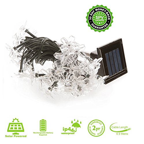Solar Lichterketten aus 50 Mehrfarbigen Solarbetriebenen LED Blume-Lichtern, lichterkette, solar lichterkette, mehrfarben solar lichterkette, solar lichterkette außen, Solarleuchten, Solarleuchte von SPV Lights: Der Solarlicht- & Beleuchtungsspezialist (2 Jahre kostenlose Gewährleistung inklusive)